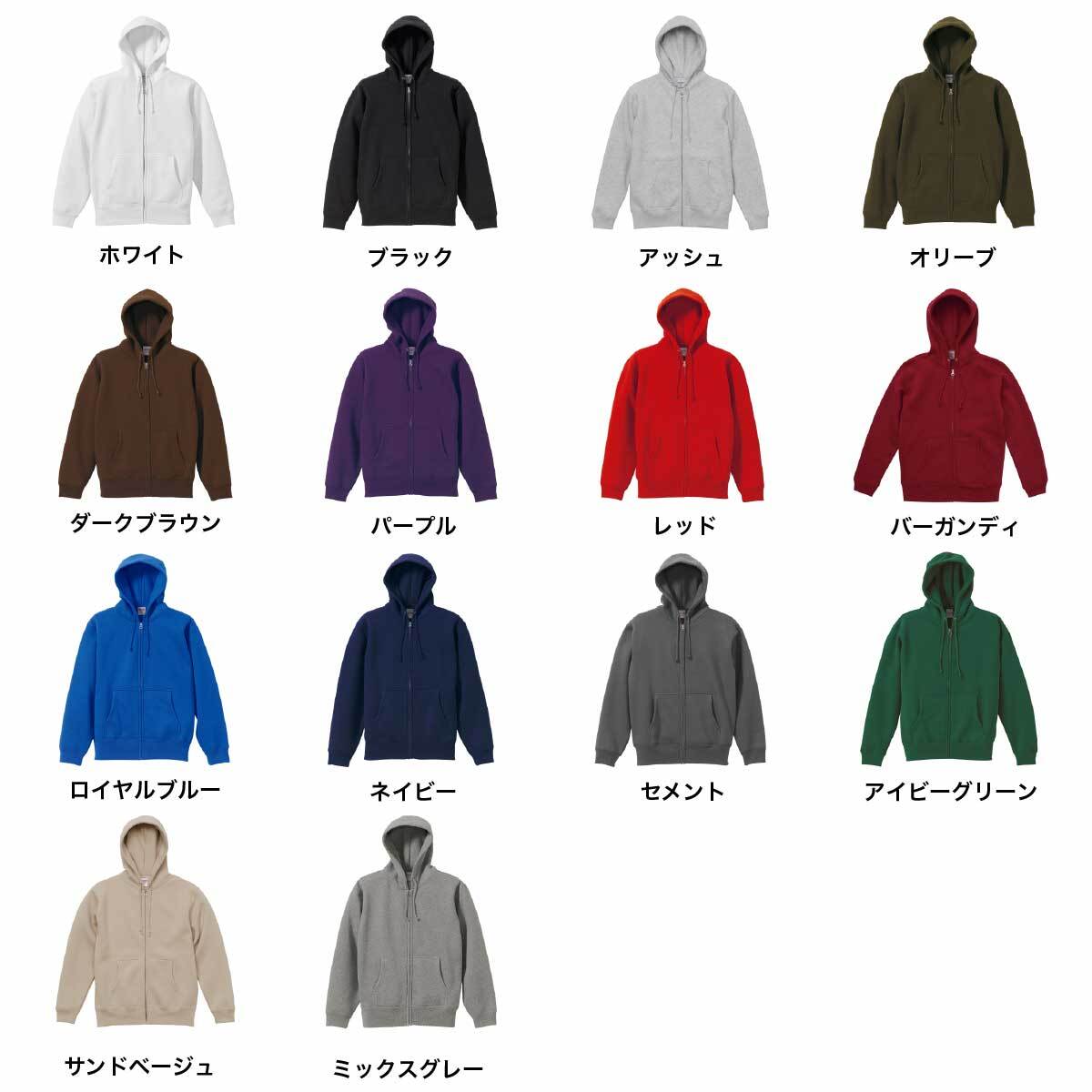 10.0 oz T/C スウェット フルジップ パーカ (裏起毛) S〜XXLサイズ