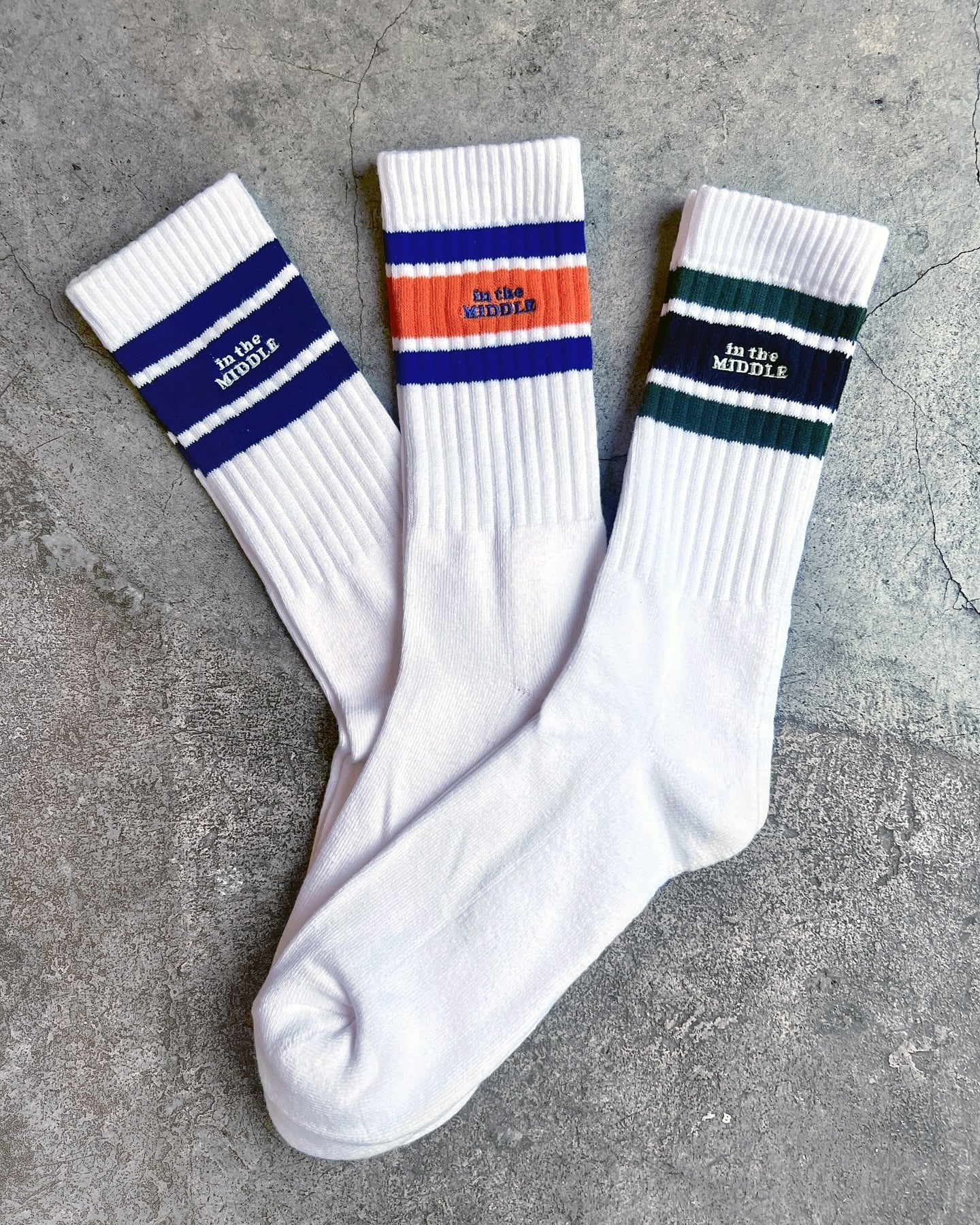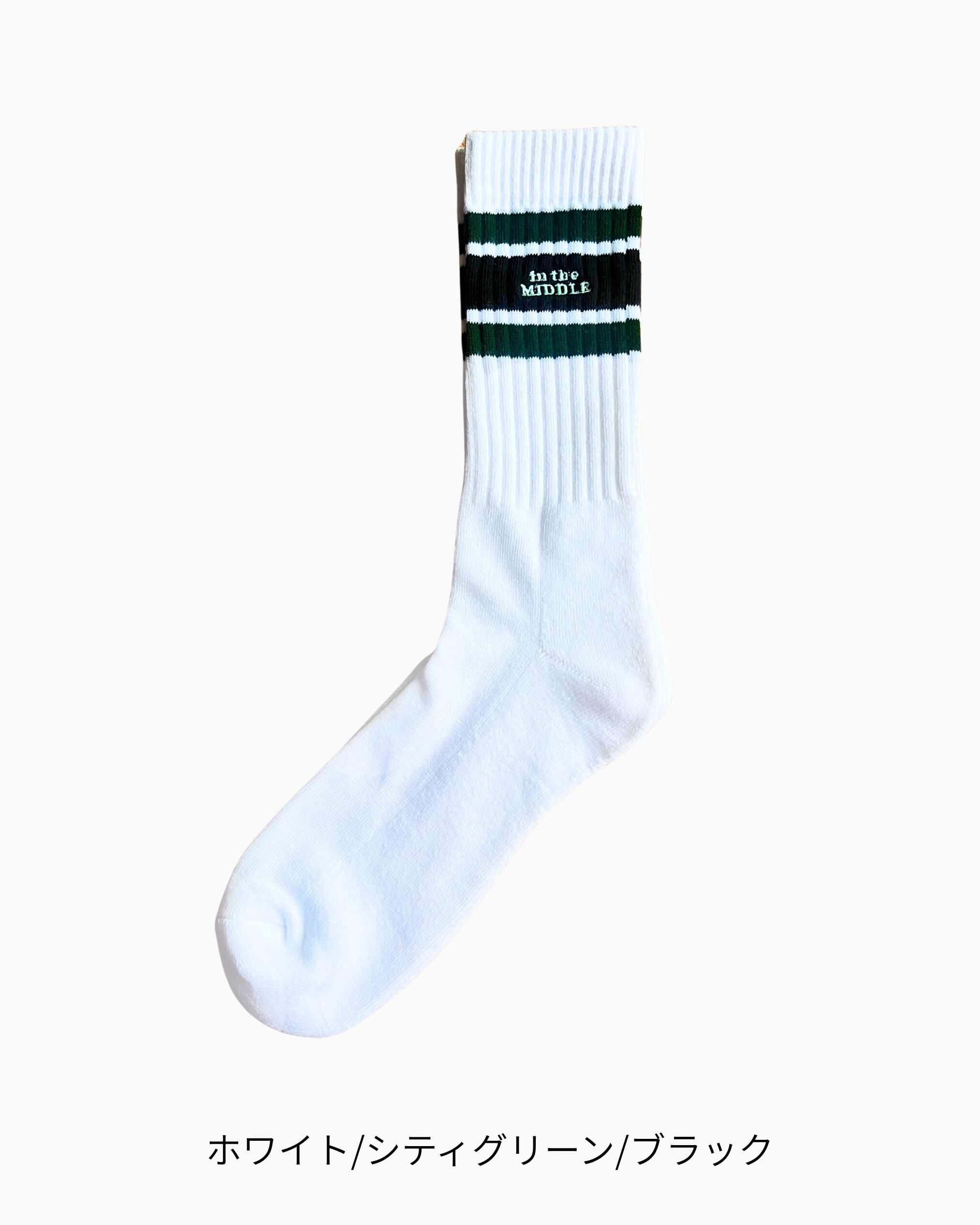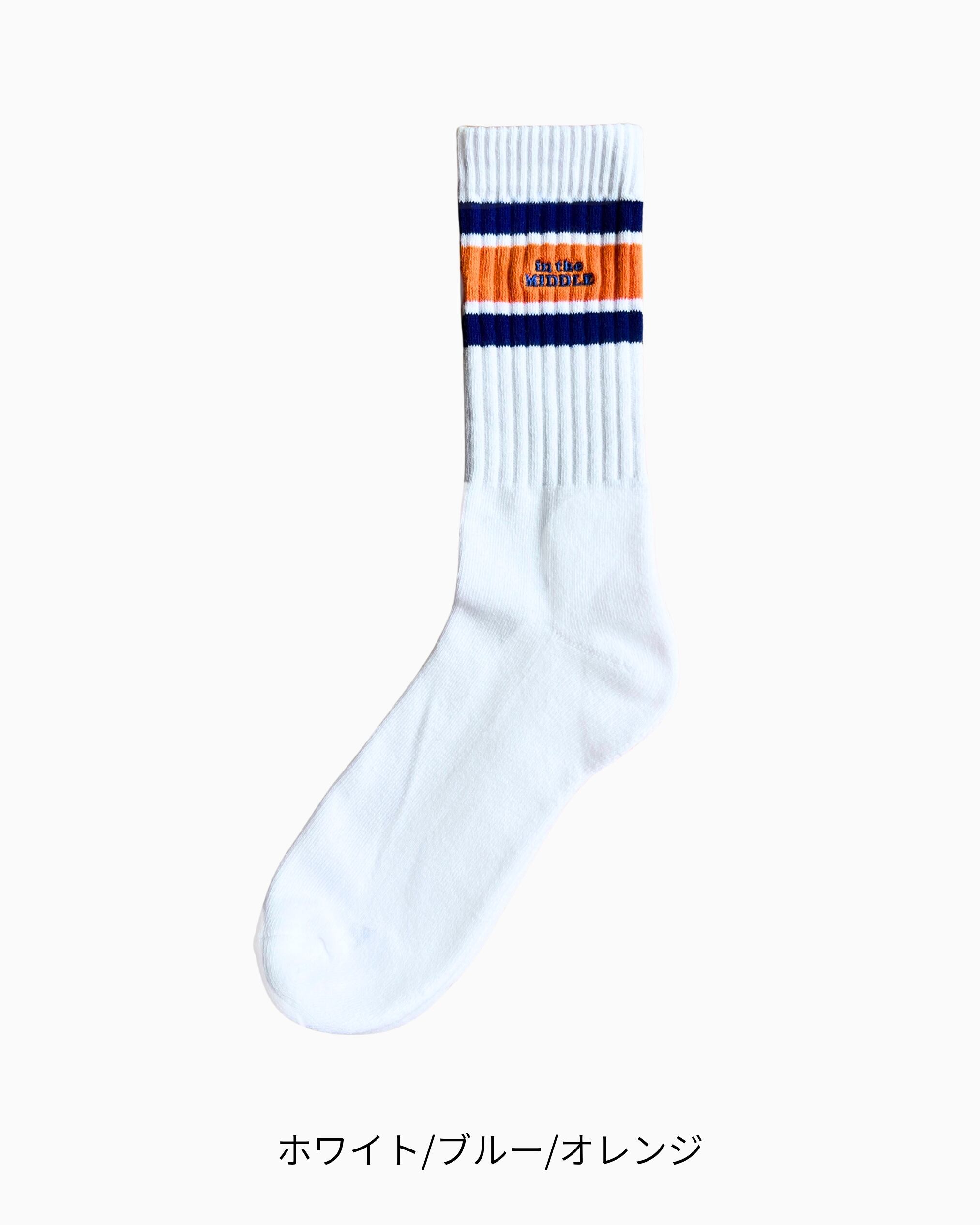 in the MIDDLEのロゴを刺繍した、オリジナルのクルーソックスです。